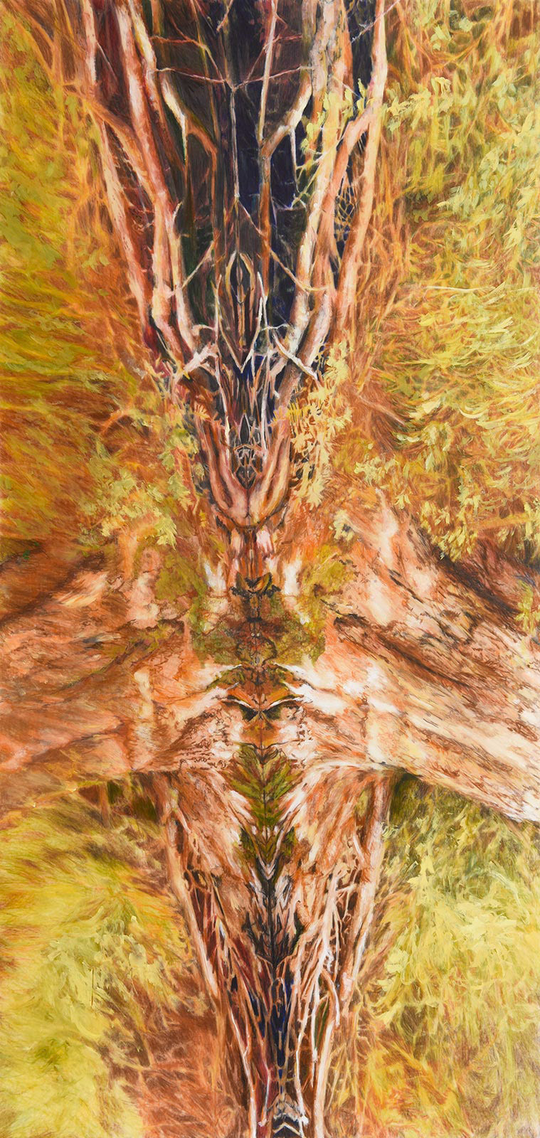 Guardian of the Forest I, 2017, colored pencil, oil on drafting film, 28" x 13"