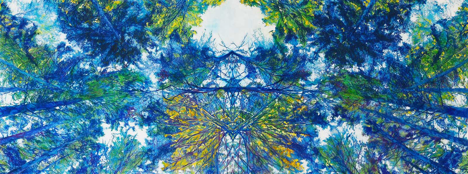 Guardian of the Forest III, 2017, oil, colored pencil on drafting film, 13" x 26"